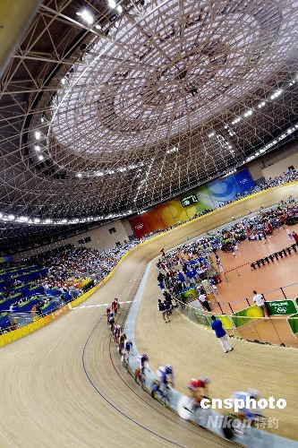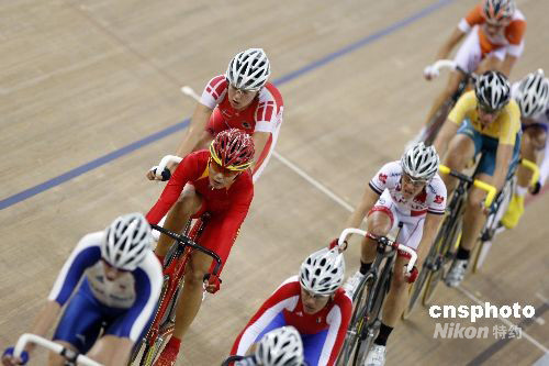 8月18日,北京奧運會女子記分賽在北京老山自行車館拉開戰(zhàn)幕。經(jīng)過激烈爭奪,荷蘭選手瑪麗亞娜·福斯以30分的成績摘得金牌,中國選手李燕獲得第10名,無緣獎牌。中新社發(fā) 盛佳鵬 攝