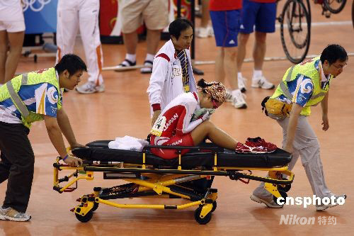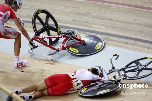 8月18日,場地自行車女子記分賽決賽在北京老山自行車館進(jìn)行,14號(hào)日本選手和田見里美在比賽中與其他選手相撞受傷。 中新社發(fā) 盛佳鵬 攝