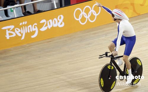 8月18日,北京奧運(yùn)會(huì)場(chǎng)地自行車男子4公里團(tuán)體追逐賽決賽在老山自行車館舉行,英國(guó)隊(duì)以3分53秒314的成績(jī)獲得金牌,打破世界紀(jì)錄。 中新社發(fā) 盛佳鵬 攝