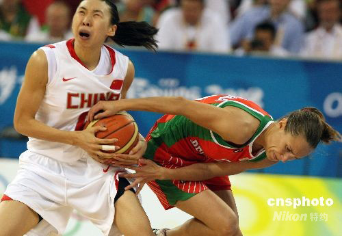 8月19日下午,北京奧運會女子籃球四分之一淘汰賽在北京五棵松籃球館舉行,中國女籃以77比62擊敗白俄羅斯率先進入前四強,隊長苗立杰砍下球隊全場最高的28分。 中新社發(fā) 任晨鳴 攝
