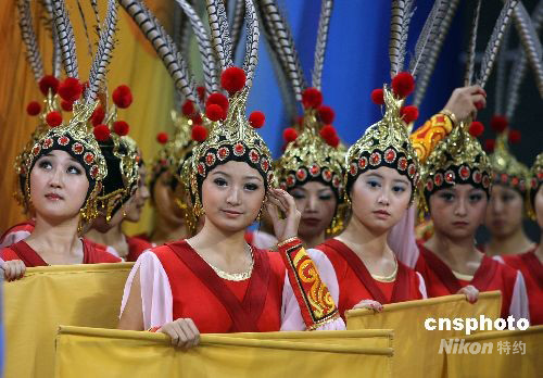 8月19日下午,北京奧運(yùn)會(huì)女子籃球四分之一淘汰賽在北京五棵松籃球館舉行,全身中國京劇裝束風(fēng)格的拉拉隊(duì)準(zhǔn)備登臺(tái)獻(xiàn)藝。中新社發(fā) 任晨鳴 攝