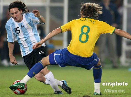 8月19日晚,北京奧運(yùn)會(huì)男足第二場(chǎng)半決賽在北京工人體育場(chǎng)舉行,阿根廷、巴西兩支強(qiáng)隊(duì)提前相遇,最終阿根廷隊(duì)以3比0完勝巴西隊(duì),進(jìn)入決賽。 中新社發(fā) 任晨鳴 攝