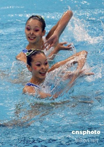 8月20日,北京奧運(yùn)會(huì)花樣游泳雙人項(xiàng)目比賽全部結(jié)束,中國(guó)組合蔣婷婷/蔣文文的總成績(jī)?yōu)?6.334分,位列第四,創(chuàng)造了中國(guó)花樣游泳在奧運(yùn)會(huì)上的最好成績(jī)。俄羅斯組合阿納斯塔西婭·達(dá)維多娃/阿納斯塔西婭·葉爾馬科娃以總分99.251分奪金。西班牙組合安德魯·富恩特斯/赫瑪·門瓜爾以總分98.334分獲銀牌。日本組合原田早穗/鈴木繪美子總分為97.167分獲銅牌。中新社發(fā) 杜洋 攝