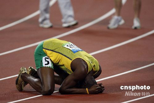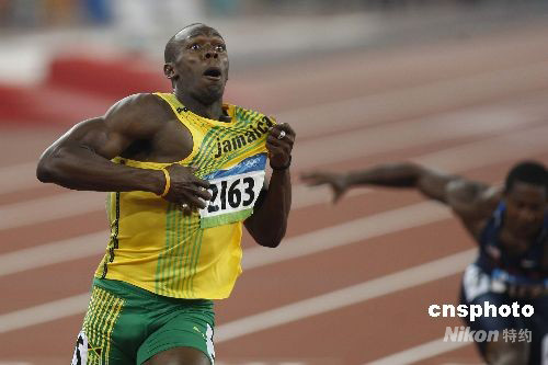 8月20日晚,即將于8月21日迎來(lái)22歲生日的牙買加選手尤塞恩·博爾特,在國(guó)家體育場(chǎng)“鳥(niǎo)巢”再造神話,在北京奧運(yùn)會(huì)男子200米決賽中,以19秒30獲得金牌,并打破約翰遜保持12年之久的19秒32的世界紀(jì)錄。這是繼博爾特16日晚以9秒69打破男子100米世界紀(jì)錄后,再一次在“鳥(niǎo)巢”創(chuàng)造奇跡。中新社發(fā) 盛佳鵬 攝