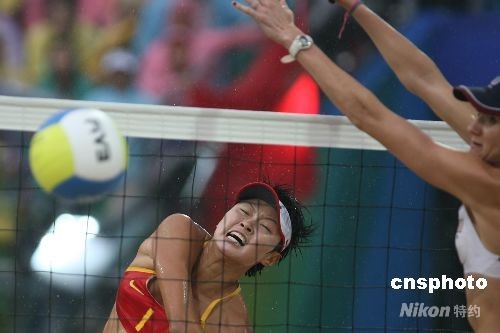 8月21日,中國選手田佳、王潔在奧運沙灘排球決賽中以0 :2負于美國選手克麗·沃爾什、米絲蒂·梅—特雷納,獲得亞軍。中新社發(fā) 武仲林 攝
