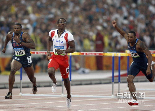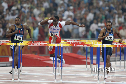 8月21日,北京奧運(yùn)會(huì)男子110米欄決賽在“鳥巢”舉行,最終古巴選手羅伯斯以12.93秒的成績(jī)獲得金牌。 中新社記者 盛佳鵬 攝
