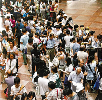 21日早尖沙咀文化中心的輪候人龍達500多人。升讀中四的郝灝揚,20日晚9時在尖沙咀文化中心排隊,“以前試過打電話購票,但電話不通,我擔心買不到門票,所以晚上立即出家門趕到文化中心排隊,想不到會排頭位。”經(jīng)過整夜守候,郝灝揚最終購得4張大匯演及2張體操表演的門票,他表示十分期待一睹楊威及李小鵬的風(fēng)采,更笑言為了觀看奧運,暑期功課至今仍未動筆。