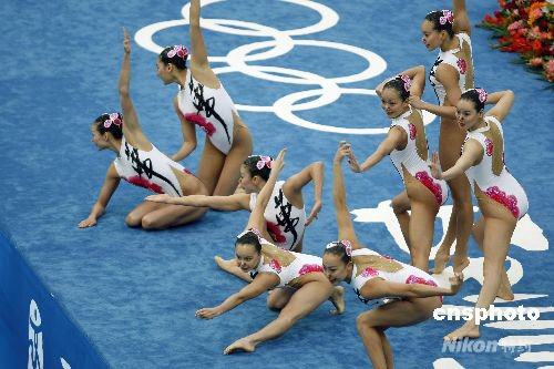 8月22日,花樣游泳集體技術(shù)自選的比賽在國家游泳中心舉行,中國隊(duì)?wèi){借全新的編排和出色的表現(xiàn),排名第三,進(jìn)入決賽。中新社發(fā) 杜洋 攝