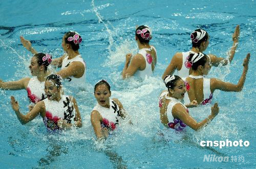 圖為中國花樣游泳隊(duì)用“中國功夫”開場(chǎng)。