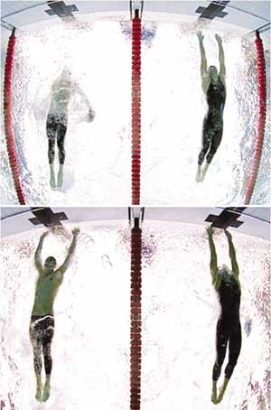 菲爾普斯和塞爾維亞的查維奇觸壁的那一瞬間。本報(bào)資料圖片