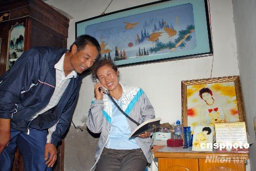 中國女子曲棍球隊(duì)在29屆北京奧運(yùn)會奪得銀牌,賽后趙玉雕的父母在家鄉(xiāng)打電話給女兒。中新社發(fā) 谷進(jìn) 攝