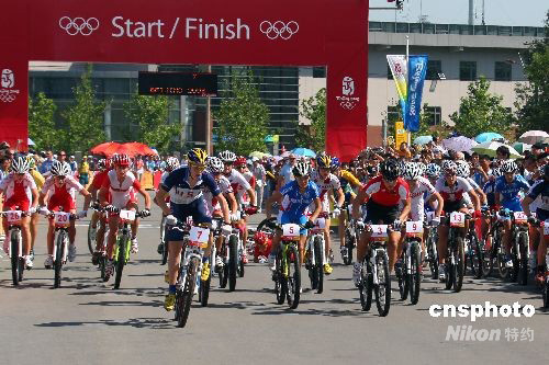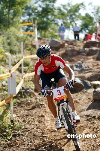 8月23日,北京奧運(yùn)會(huì)自行車山地分項(xiàng)女子越野賽在北京老山山地自行車場舉行。德國選手扎比內(nèi)·施皮茨一路保持領(lǐng)先,最終以1小時(shí)45分11秒的成績順利摘金。波蘭選手馬婭·沃什佐夫斯卡獲得銀牌,俄羅斯選手伊琳娜·卡連季耶娃獲得銅牌。中國選手任成遠(yuǎn)獲得了第5名,另一位中國選手劉穎最終獲得第12名。中新社發(fā) 盛佳鵬 攝