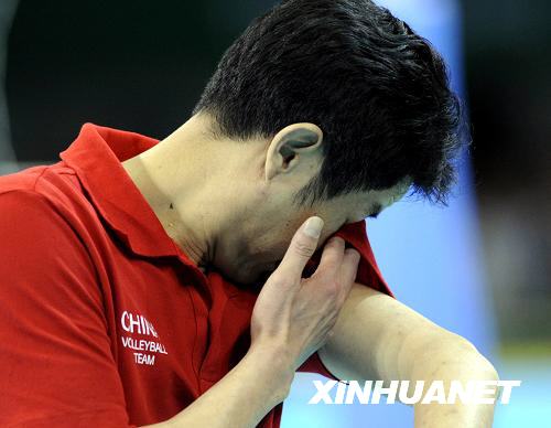 中國(guó)女排主教練陳忠和在中國(guó)隊(duì)獲勝后激動(dòng)地落淚。新華社記者 王建華 攝