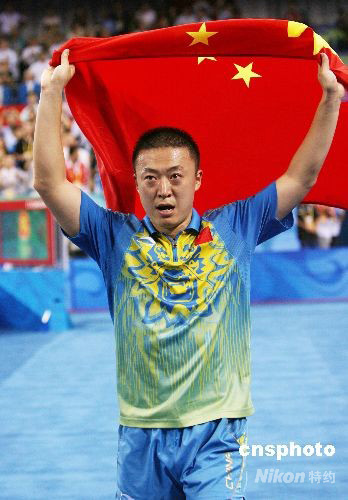 8月23日晚,馬琳在北京奧運會乒乓球男子單打決賽中以4:1戰(zhàn)勝隊友王皓,奪得冠軍。為中國奧運軍團贏得第49枚金牌。至此,中國選手包攬北京奧運會乒乓球男子單打前三名。此前,另一名中國乒乓球名將王勵勤在季軍爭奪戰(zhàn)中擊敗42歲的瑞典老將佩爾森,獲得銅牌。 中新社發(fā) 武仲林 攝