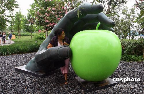 歷時(shí)16天的北京奧運(yùn)會(huì)即將閉幕,眾多游客抓緊最后的時(shí)間來(lái)到北京奧運(yùn)會(huì)主場(chǎng)館區(qū)——奧林匹克公園參觀游覽,共同感受奧運(yùn)氛圍。圖為一位女士被奧林匹克公園內(nèi)造型別致的雕塑吸引,與之“親密”合影。中新社發(fā) 劉新 攝