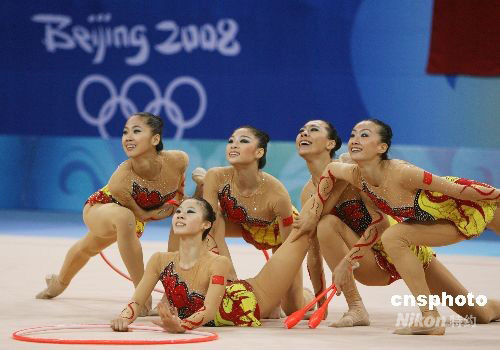 8月24日,中國藝術體操隊在北京奧運會藝術體操集體全能決賽中奪得銀牌,取得歷史性突破。 中新社發(fā) 武仲林 攝