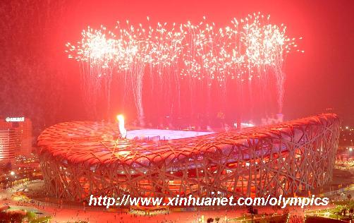 8月24日,第29屆夏季奧運(yùn)會(huì)閉幕式在國(guó)家體育場(chǎng)——“鳥(niǎo)巢”舉行。這是閉幕式上燃放的焰火。 新華社記者 李鋼 攝