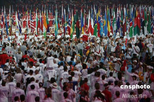 8月24日晚,北京奧運(yùn)會(huì)閉幕式在奧林匹克公園內(nèi)的國家體育場(chǎng)“鳥巢”舉行,各國運(yùn)動(dòng)員入場(chǎng)。 中新社發(fā) 武仲林 攝