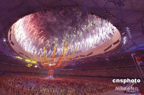 8月24日晚21時45分,北京奧運會閉幕式在奧林匹克公園內(nèi)的國家體育場上空煙花映照下結(jié)束,經(jīng)歷了激烈鏖戰(zhàn)的世界各地運動員在“鳥巢”內(nèi)享受歡樂。