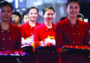 隨著我國(guó)各種重大賽事和活動(dòng)的增多,對(duì)禮儀小姐的需求量也在大增,禮儀培訓(xùn)也成為熱門。劉曉東老師告訴記者,今年職業(yè)高中招生許多專業(yè)都沒有招滿,但是和禮儀相關(guān)的航空服務(wù)專業(yè)卻出現(xiàn)飽和!爸徽300多人,卻來(lái)了1000多人,就是因?yàn)檫@個(gè)專業(yè)的就業(yè)率和薪酬水平確實(shí)比較突出!庇浾吡私獾,如果定向去航空公司,一般的地勤人員算上補(bǔ)助可以拿到2000元至3000元的薪酬水平,表現(xiàn)特別出色的學(xué)生可以去外航,如韓亞航空每年招聘空姐的起薪就在1000美元左右。還有些學(xué)生因?yàn)樾蜗蠛谩⑼庹Z(yǔ)好,也被一些金融機(jī)構(gòu)看好,成為了大堂經(jīng)理。