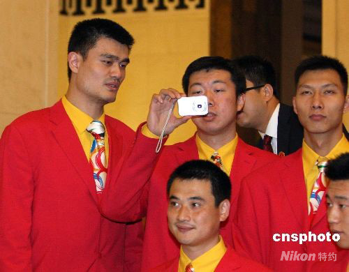 8月26日,2008年北京奧運(yùn)會中國體育代表團(tuán)總結(jié)大會在北京人民大會堂金色大廳舉行。圖為中國男籃隊(duì)員參加北京奧運(yùn)會中國體育代表團(tuán)總結(jié)大會。 中新社發(fā) 廖文靜 攝