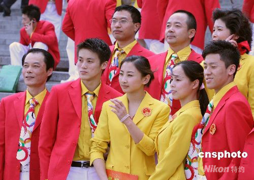 8月26日,2008年北京奧運(yùn)會中國體育代表團(tuán)總結(jié)大會在北京人民大會堂金色大廳舉行。中國蹦床運(yùn)動員參加北京奧運(yùn)會中國體育代表團(tuán)總結(jié)大會。 中新社發(fā) 廖文靜 攝
