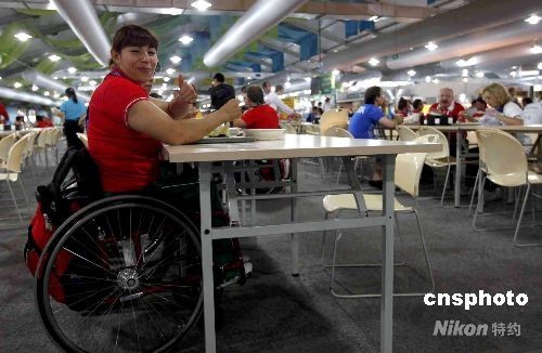 參加殘奧會的運動員在殘奧村餐廳舒適用餐。中新社發(fā) 杜洋 攝