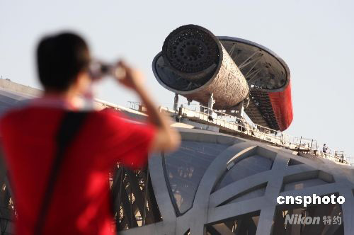 圖:“鳥巢”火炬塔檢修迎接殘奧會