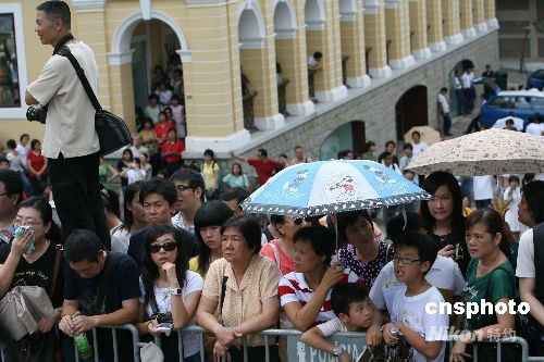 九月一日上午,北京奧運(yùn)內(nèi)地金牌運(yùn)動(dòng)員在澳門的第二日訪問(wèn)行程,到名勝大三巴游覽,在牌坊前拍照合影。吸引大批市民一早到場(chǎng)等候,爭(zhēng)睹運(yùn)動(dòng)員的風(fēng)采。中新社發(fā) 洪少葵 攝