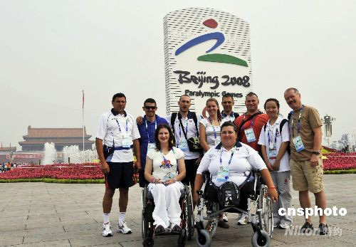 圖:羅馬尼亞殘奧運(yùn)動員天安門廣場合影