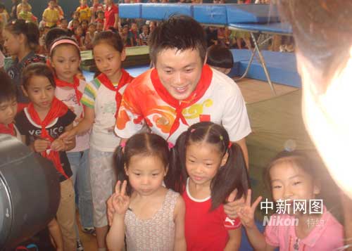 回到常州家中看望爸媽的奧運冠軍陸春龍,今天在母校江蘇常州少兒體校儼然成了偶像明星,就連中午與親朋好友及恩師團聚的飯桌上,飯店的服務(wù)員也沒有放棄這個可以“親密接觸”奧運冠軍的機會,紛紛要求合影、簽名,使得陸春龍的手只能拿筆而不能拿筷子。雖然簽名簽到手發(fā)麻,但陽光的笑容始終定格在“蹦床王子”的臉上。