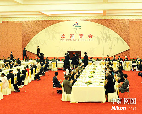 中國國家主席胡錦濤和夫人劉永清在北京人民大會堂舉行宴會歡迎出席北京2008年殘奧會的貴賓。廖文靜 攝