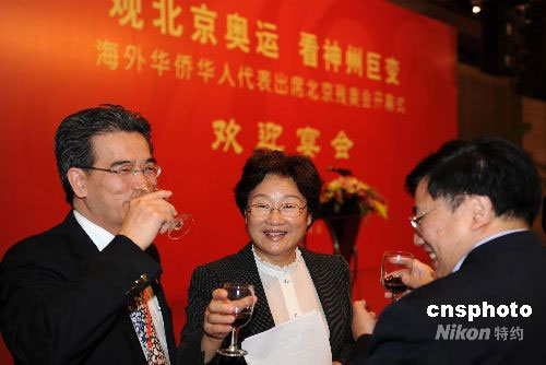 9月6日,國僑辦主任李海峰在北京向華僑華人代表敬酒。當(dāng)日,國務(wù)院僑務(wù)辦公室舉行宴會,歡迎出席北京殘奧會開幕式的100位華僑華人代表。中新社發(fā) 廖攀 攝