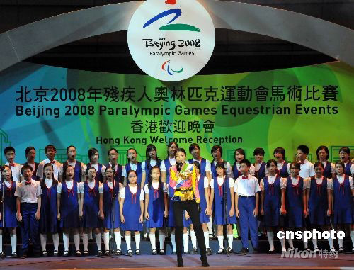 九月六日,北京二零零八年殘奧委會馬術(shù)比賽開幕式在香港舉行歡迎晚會,香港歌星陳慧琳與香港兒童合唱團(tuán)獻(xiàn)唱為活動助興。中新社發(fā) 鄧慶樂 攝
