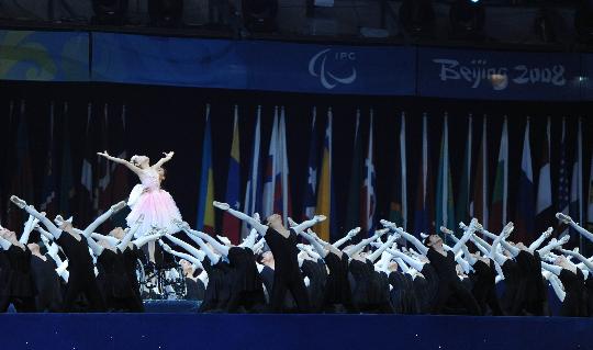 圖:殘奧會開幕式上災(zāi)區(qū)小女孩進(jìn)行文藝表演