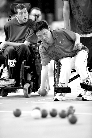 昨日,45歲的王義和他的隊(duì)友們?cè)诒本垔W會(huì)硬地滾球項(xiàng)目中亮相。這是中國(guó)運(yùn)動(dòng)員首次參加這個(gè)項(xiàng)目的殘奧會(huì)比賽。