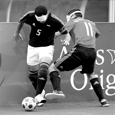 阿根廷(左)與西班牙的盲人球員在比賽中。 新華社發(fā)