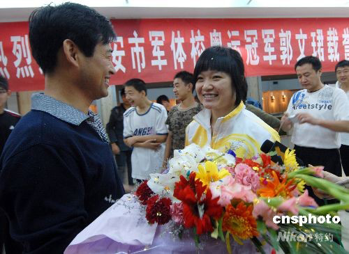 9月9日,在教師節(jié)的前一天,北京奧運會女子10米氣手槍冠軍、西安姑娘郭文珺回到了自己的母校,看望自己的恩師黃彥華和市軍體校的師生。