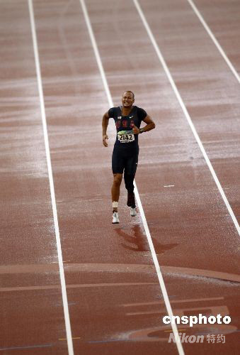 9月9日,北京殘奧會男子100米-T44決賽中,美國選手馬龍·雪利在中途不慎摔倒,他爬起后獨自完成了比賽。 中新社發(fā) 杜洋 攝
