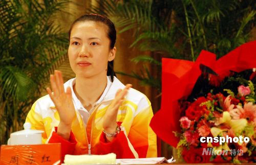 圖:中國女排隊員周蘇紅在報告會上發(fā)言