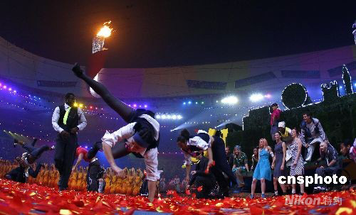 9月17日晚,北京2008年殘奧會(huì)閉幕式在國家體育場舉行。在閉幕式上下屆舉辦城市英國倫敦進(jìn)行了“倫敦八分鐘”表演。 中新社發(fā) 杜洋 攝