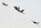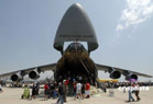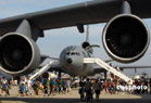 當(dāng)?shù)貢r(shí)間5月4日,位于美國(guó)南加州河濱縣的一個(gè)美國(guó)空軍預(yù)備基地舉行規(guī)模盛大的航空展和飛行表演。C-17A全球霸王運(yùn)輸機(jī)、C-5銀河運(yùn)輸機(jī)等空中巨無(wú)霸和F-22猛禽戰(zhàn)機(jī)等美軍先進(jìn)軍用飛機(jī)亮相展覽,F(xiàn)-22戰(zhàn)機(jī)飛行表演、美國(guó)空軍“雷鳥(niǎo)”飛行隊(duì)的特技表演等令近十萬(wàn)民眾大飽眼福。