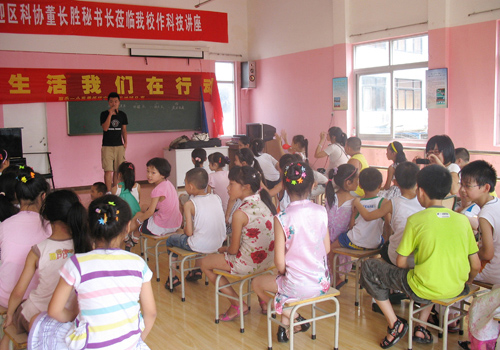 下午的時(shí)間交給了孩子們。他們先要無(wú)圖紙搭積木,即僅憑借想象力搭疊積木。“不憤不啟,不悱不發(fā)”,在關(guān)鍵時(shí)刻,隊(duì)長(zhǎng)將示意圖紙發(fā)給了孩子們;顒(dòng)結(jié)束時(shí),還是有些孩子沒(méi)有搭出成品。隊(duì)員就鼓勵(lì)他們?cè)俳釉賲。最后,自由活?dòng)的時(shí)間到了,有的孩子玩“老鷹捉小雞”,有的孩子跟著女老師學(xué)起了舞蹈……