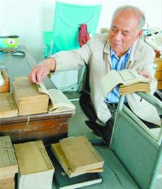 在遼寧省圖書(shū)館6樓特藏部的辦公室,年近古稀的韓錫鐸輕輕翻閱著紙頁(yè)發(fā)黃的線裝書(shū),旁邊的推書(shū)車(chē)上,整齊地?cái)[放著一摞摞古籍——