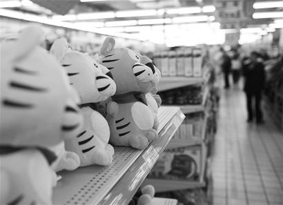 記者走訪廈門各大賣場被告知:今年凡是跟老虎有關(guān)的都很好賣,不過,銷量不及網(wǎng)絡(luò)!岸际悄贻p人買,他們在網(wǎng)上能找到更便宜、種類更多的老虎!币晃毁u場人員說!