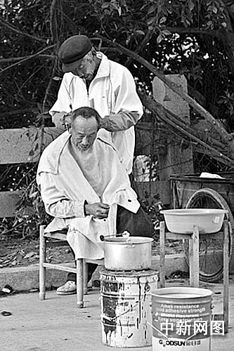 中新網(wǎng)晉江2月20日電 (秦越 )在上個(gè)世紀(jì)五六十年代,“剃頭挑子”很流行,就是一個(gè)理發(fā)師傅挑著擔(dān)子搖著鈴鐺走街串巷,擔(dān)子一頭是洗臉盆架和一個(gè)生著火的爐子,另一頭是一條長(zhǎng)板凳,專門給人理發(fā)。近日,記者在閩南僑鄉(xiāng)晉江市區(qū)蓮溪路上就遇見(jiàn)一個(gè)這樣的“剃頭”師傅:和以前不一樣的是長(zhǎng)板凳換成了靠背椅,扁擔(dān)換成了三輪自行車。