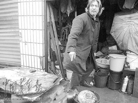 而今,即將步入花甲之年的他,穿著一套灰色的老式西裝,上面沾滿了油漬,有好多處破爛的豁口,甚至領(lǐng)子因破損得太嚴(yán)重,只好用綠布條鑲了上去,一臉的胡茬子,大多已灰白,明顯是老境頹唐。