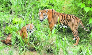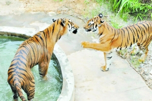 廣東省唯一的華南虎馴養(yǎng)繁殖基地——“粵北華南虎馴養(yǎng)繁殖研究中心”飼養(yǎng)的兩只國寶級成年華南虎“公主、王子”,自今年3月10日初婚洞房后,至今仍沒有懷孕跡象。昨天上午,在本報記者的見證下,研究中心決定實施第二階段的繁育試驗——讓公主與王子雙雙再入洞房,然后零距離長時間生活培養(yǎng)感情增加懷孕幾率。