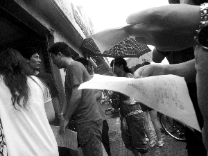 監(jiān)考官:很松的,只要考生的動作不是很張揚,監(jiān)考老師用不著苛刻。都是抄“小抄”,基本沒有人不抄。開考之前去復(fù)印店做好準備工作,然后(“小抄”)放手里、卷子下面、腿上、鉛筆盒里、眼鏡盒里。