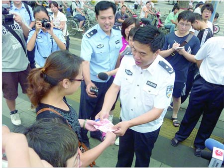 7月10日的活動于早8時開始。在中山路與建設大街交叉口,石家莊市委宣傳部副部長、省會文明辦主任薛建廷,石家莊市公安局副局長、市公安交管局局長武瑞琪分別將500元獎金發(fā)給第一位不闖紅燈的非機動車騎乘人王秀山和不闖紅燈的行人郝召云;在中山路與維明街交叉口,市委宣傳部常務副部長王惠周,市公安交管局副局長金永安分別將500元獎金發(fā)給第一位不闖紅燈的行人杜彥坤和第一位不闖紅燈的非機動車騎乘人鄭立剛;在中山路與青園街交叉口,省會文明辦副主任申學啟,市公安交管局局長助理、設施大隊大隊長李春光分別將500元獎金發(fā)給第一位不闖紅燈的行人陸運清和第一位不闖紅燈的非機動車騎乘人劉建英。